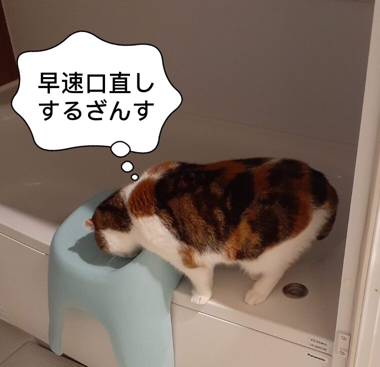 三毛姐さん パートⅣ 2021年03月08日 16:30 珍しく旦那氏がキッチンにいました。 味付けに納得いかないようです。(⌒-⌒; ) 何度も味の確認してもらっていました。おッ⁉️いよいよ合格判定ですか❓そうそう、何度も味見してると味覚がおかしくなるよねぇ〜…😵…って何故、風呂椅子に残った水を飲んでるのさ❗️Σ(゚д゚lll)💦⚠️風呂上がりに60℃の熱湯をシャワーで汚れを流しています。 ふぅちゃんくぅちゃんをクリックして更新メッセージを受け取ろう 「にゃんず」カテゴリの最新記事 タグ :#ライブドアブログ#猫写真#漫画#絵日記#かわいい#面白い#cat#癒し < 前の記事次の記事 > コメント コメント一覧 (1) 1. 名前:nameless 2021年03月08日 14:13 もはや女将さんみたいですね 0 にゃんずのしもべ がしました コメントフォーム 名前 コメント 記事の評価 リセット リセット 顔 星 情報を記憶 コメントを投稿する